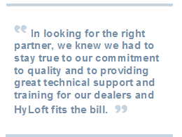 HyLoft is the premier global supplier of overhead storage products and is headquartered in Las Vegas, NV. HyLoft created the ceiling storage category within the home and organization industry. Its award winning designs have afforded HyLoft seven utility and design patents. HyLoft manufactures numerous versions of the durable all steel overhead storage systems as well as many new and innovative storage products. HyLoft maintains an exclusive line of storage products that are only available through the dealer segment while also supplying its retail line to home improvement centers such as The Home Depot and Lowes.