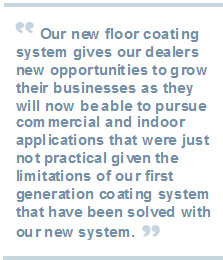Dave McClearen, Slide-Lok’s Floor Coating Sales Manager, stated, “Dealers and customers are going to love our new and improved polyaspartic concrete floor coating system.” McClearen added, “Our new product has all the advantages of our previous polyaspartic garage floor coating system but, more importantly, addresses all the shortcomings that our dealers identified to us.” McClearen commented, “What really sets our new floor coating system apart is that the odor is barely noticeable and quickly dissipates, giving our dealers and customers a tremendous improvement over our prior floor coating system.” McClearen also noted, “Our new floor coating system gives our dealers new opportunities to grow their businesses as they will now be able to pursue commercial and indoor applications that were just not practical given the limitations of our first generation coating system that have been solved with our new system.”