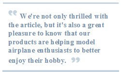 Slide-Lok President, Brian Strayer, states, "We’re not only thrilled with the article, but it’s also a great pleasure to know that our products are helping model airplane enthusiasts to better enjoy their hobby.”